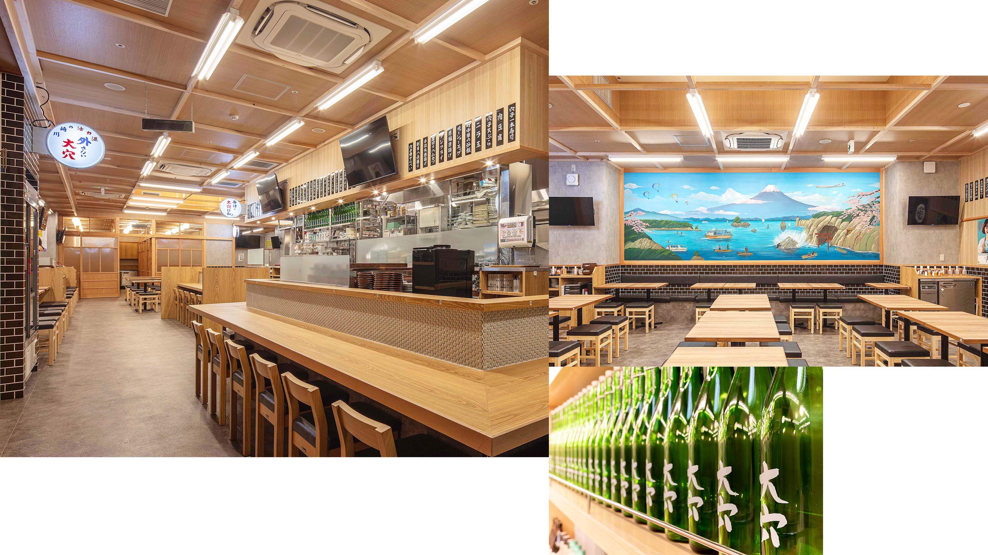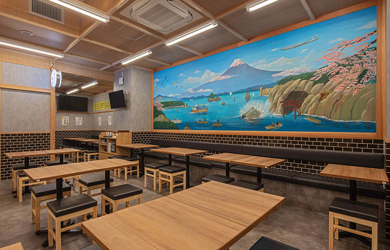 おでん香る店内と昭和感じる富士の壁画
