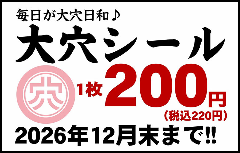 大穴全店で利用可能(期限毎にカラー変更)